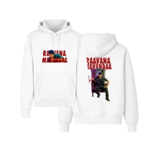 • Clean white Hooded Sweatshirt with One & Only Raavana Mandana Design